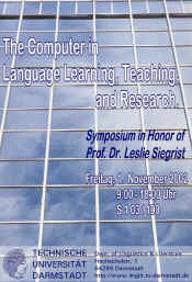 The project is funded through tuition fees (student aids, materials) and will aid the teaching and learning of linguistics in the English Linguistics section of the Department of Linguistics and Literary Studies, TU Darmstadt.